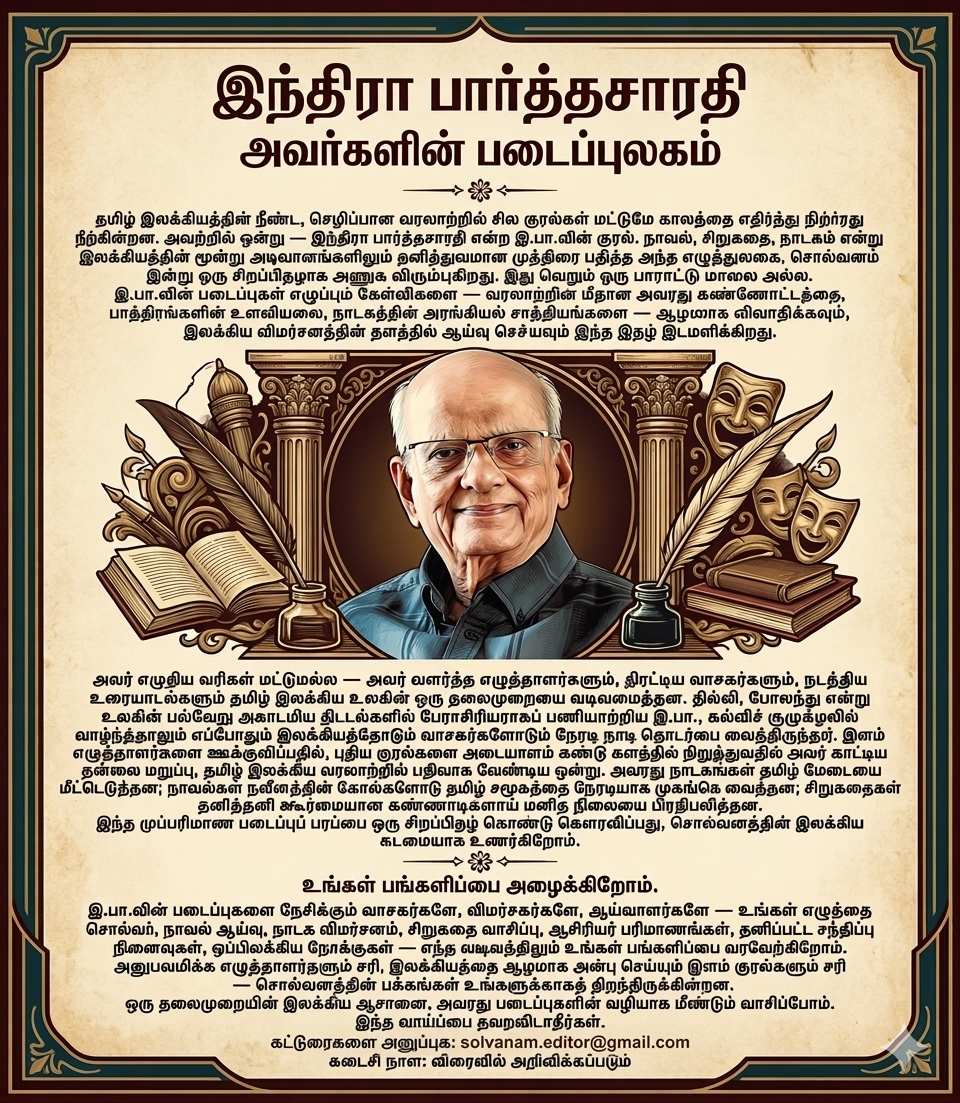 சொல்வனம் சிறப்பிதழ்: இந்திரா பார்த்தசாரதிஅவர்களின் படைப்புலகம்