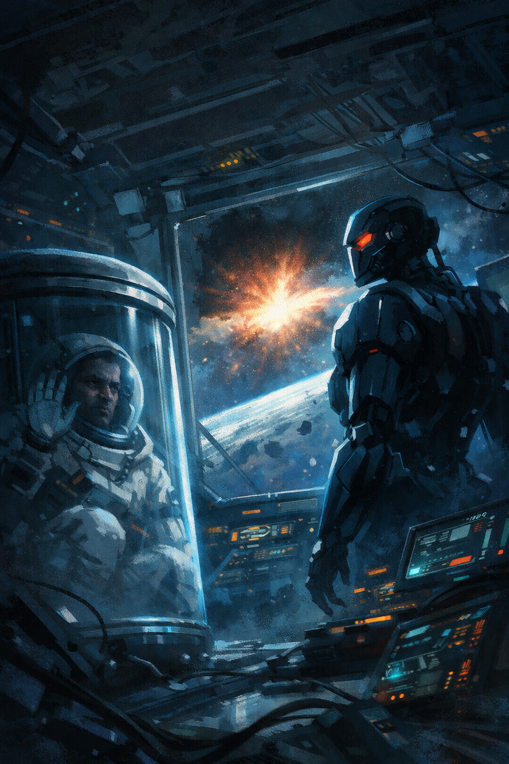 நான் கண்விழித்தபோது, விண்களனிற்குள் அந்தரத்தில் மிதந்து கொண்டிருந்தேன். விண்களன் எந்த வித அசைவுமின்றி நிற்பது போல் இருந்தாலும் அது வேகமாக வெற்றிடத்தின் ஆழத்திற்குள் சீறிப் பாய்ந்து சென்று கொண்டிருந்தது. குறுகிய ஜன்னல் வழியே பார்த்தேன். அகண்ட கருமை நிற பிரபஞ்சத்தில் விண்வெளியின் எந்தப் பகுதி அது என்பதை என்னால் “கேள்வி-பதில்”