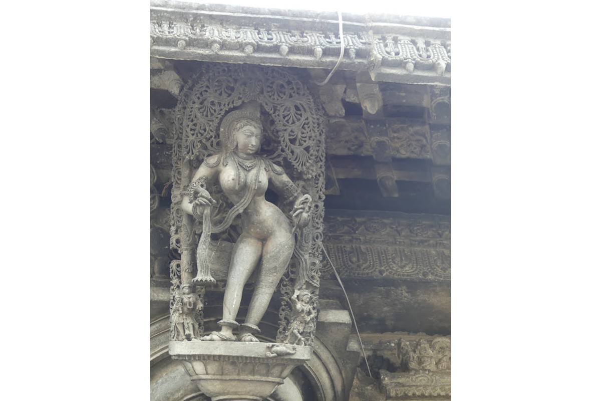 ஒரு ஆவர்த்தம் ஜதி சொல்லி பின்னழகைக் காட்டி அசையாமல் அவள் நிற்க உளி அந்த மென்மையான கற்களில் அவள் நின்ற நிலையை வடித்துக் கொண்டிருந்தது. பின்னர் ‘தர்ஷன் தேஜோ நாத்’ என்ற ‘ஸ்தாவன்’ (பதம்) எடுத்து அபிநயிக்க அதில் சித்தம், சித்தாலயம் என்ற நிலையில் அவள் ஆடாமல் அசையாமல் நின்றாள். அந்த நிலையில் உடலின் கீழ்ப் பகுதி ஒரு நேர்க்கோட்டில் நிற்க, இடை ஒசிந்து, மார்புகள் விம்மி, கரங்களில் தாமரைத் தண்டு கொண்டு வருடும் வீணை அமர்ந்திருக்க, காதுக் குழைகள் நிலைத்து நிற்க, நெற்றி விரிய, எடுத்துக் கட்டிய சிகையே மகுடமாக அவளே ஒரு சாத்யகி போல நின்றாள்