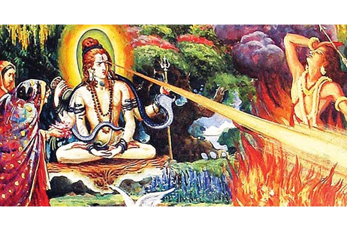 பகவான் சங்கரன் திடுமென அப்சர பெண்கள் பாடுவதைக் கேட்டும் தன் சமாதி கலையாமலே இருந்தார். தன்னை அடக்கியவர்கள், அனிச்சையாக எதுவும் செய்வதில்லை என்பர். நந்திகேஸ்வரர் லதா மண்டபத்தின் வாயிலில் வந்து நின்றபடி வாயில் விரலை வைத்து, சபலத்துக்கு இடம் கொடுக்க வேண்டாம் என்று ஆணையிடுவது போல நின்றது. அதைக் கண்டு அவருடைய பூத கணங்கள் மட்டுமல்ல, வண்டுகள் மாமரத்தை விட்டு விலகின, முட்டையிடும் பறவை இனங்கள், மற்றும் ஊர்வனவைகளும் ஸ்தம்பித்து நின்றன